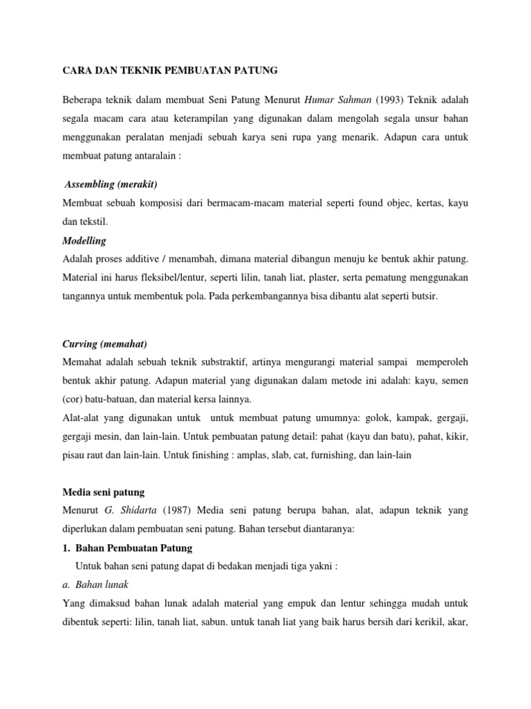 Cara Dan Teknik Pembuatan Patung