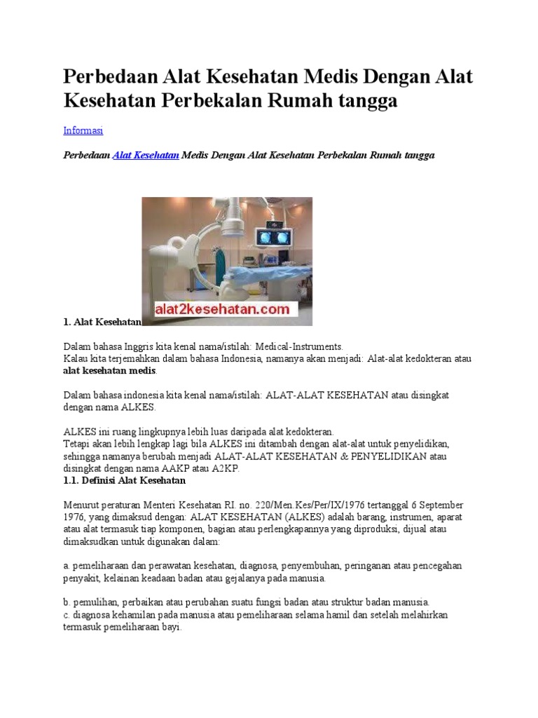 Perbedaan Alat Kesehatan Medis Dengan Alat Kesehatan Perbekalan Rumah Tangga
