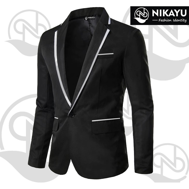 DOZN Jas Blazer Pria Korea Black - List Hitam | Lazada Indonesia