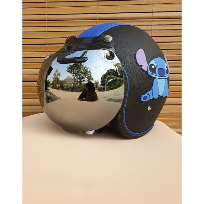 BANTING HARGA HELM PRIA HELM MOTOR HELM BOGO DEWASA GAMBAR STITCH WARNA HITAM BIRU KACA | Shopee Indonesia