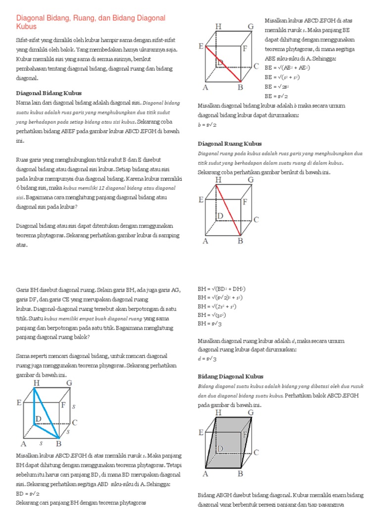 Diagonal Bidang, Ruang, dan Bidang Diagonal Kubus