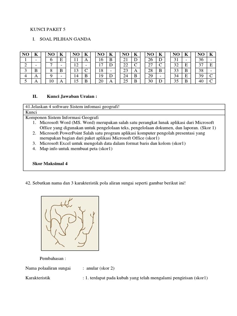 41. Jelaskan 4 software Sistem infomasi geografi!42. Sebutkan nama dan 3 karakteristik pola aliran - Brainly.co.id