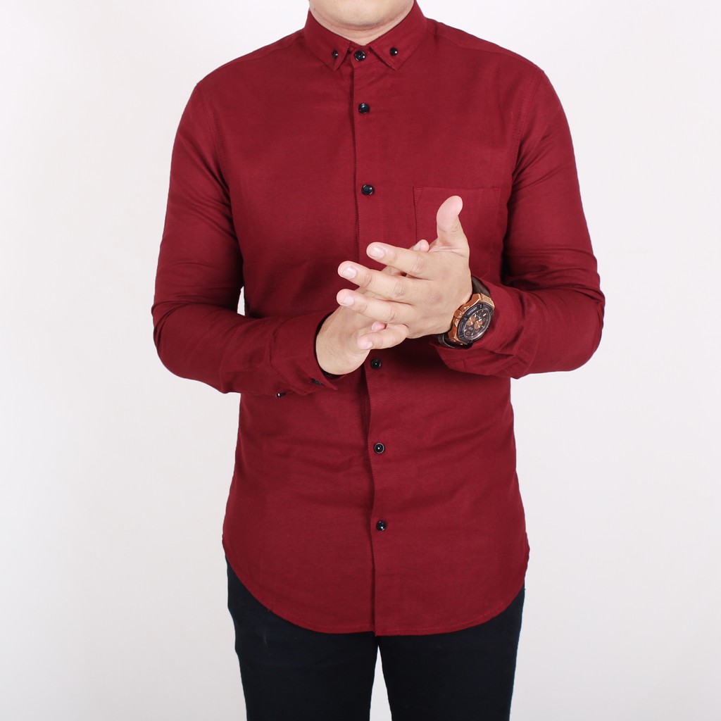 Kemeja Merah Marun Pria Lengan Panjang Slim Fit Warna Maroon | Lazada Indonesia