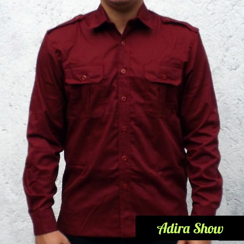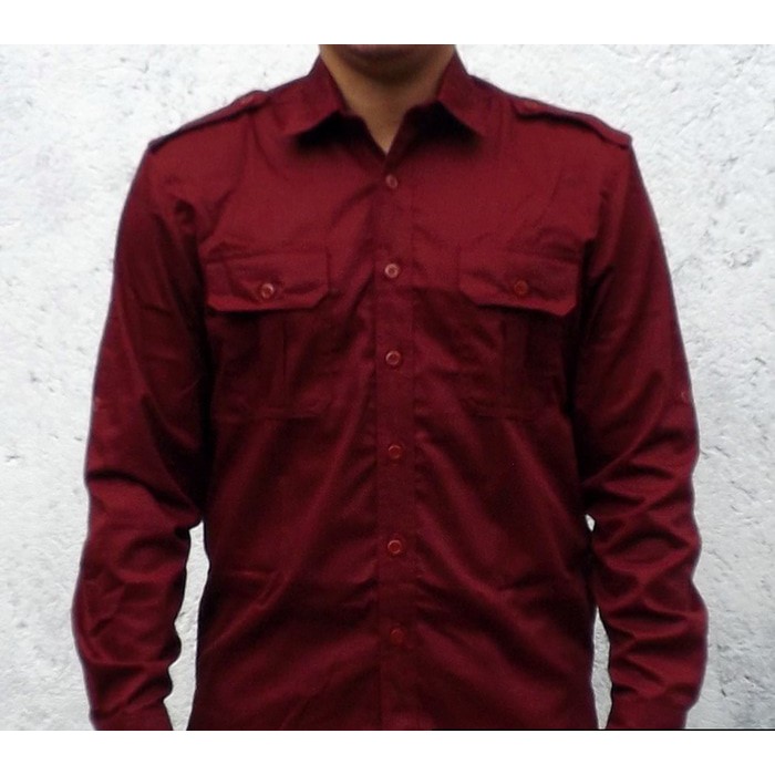 Jual Kemeja PDL Pria Lengan Panjang - Kemeja Lapangan Warna Merah Maroon - Kota Bogor - adirashow | Tokopedia