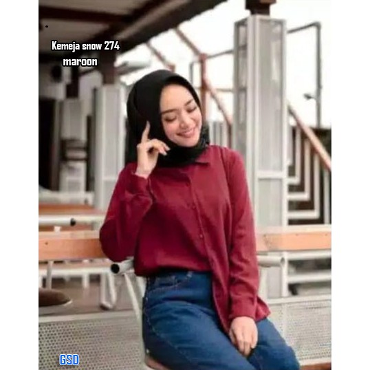 Kemeja Polos Wanita Lengan Panjang Fashion Wanita Casual / KEMEJA SNOW 274 | Shopee Indonesia