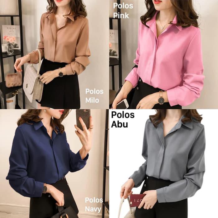 Predz_Id Kemeja Polos Wanita Baju Kantor Lengan Panjang Cewek Formal Atasan Casual | Kaos dan Kemeja Wanita | Zilingo Shopping Indonesia