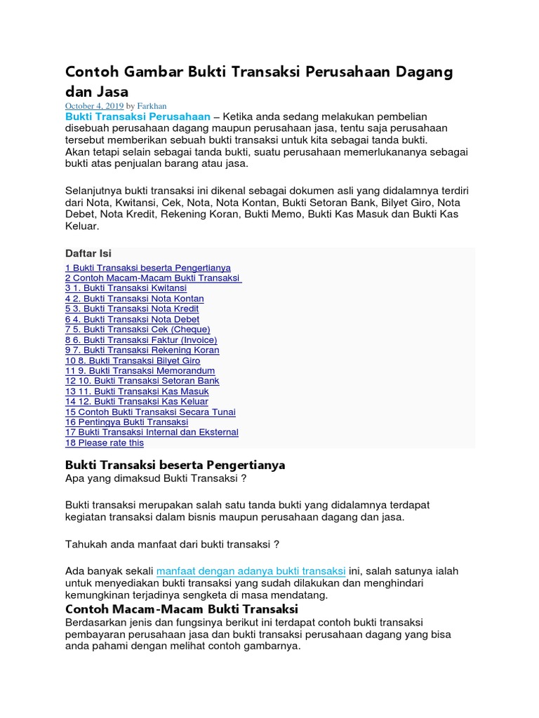 Contoh Gambar Bukti Transaksi Perusahaan Dagang Dan Jasa
