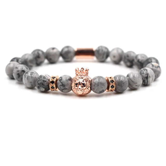 Populer Perhiasan Gelang Alam Gambar Manik manik Batu Bangle Gelang Pesona Mawar Emas Kepribadian Micro Inset Mahkota Tengkorak Unisex|Strand Gelang| - AliExpress