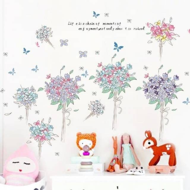 Stiker Dinding 60x90cm Motif Karakter Rangkaian Bunga buket hiasan dekorasi Ruang kamar rumah | Shopee Indonesia