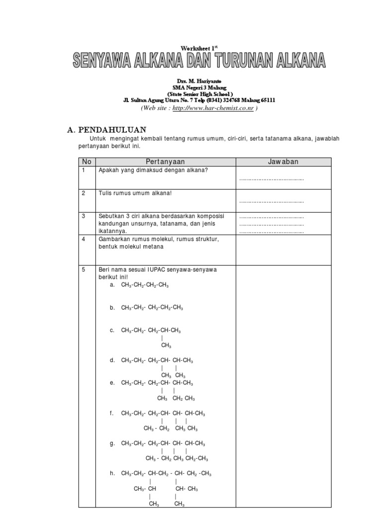 Web view2015-11-18CH3 – CH2 - C - CH - CH - CH3 | | … diapit dua buah alkil. Sehingga alkanon mempunyai rumus umum sebagai berikut : R - C –R1. ll. O. 2. Tata Nama. Penamaan - [DOC Document]