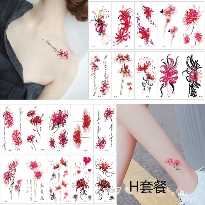Stiker tato tahan air perempuan abadi Korea simulasi seksi lucu bunga huruf Inggris stiker tato klav | Shopee Indonesia