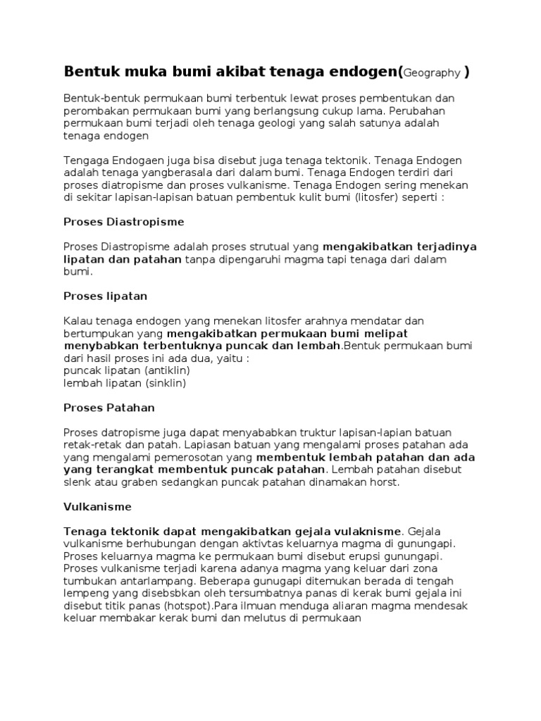 Tenaga Endogen (Vulkanisme, Seisme, Tektonisme) + Contoh