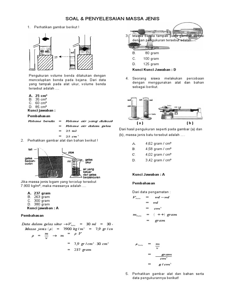 Latihan Soal IPA Massa Jenis Kelas 7 SMP Kurikulum 2013 K13