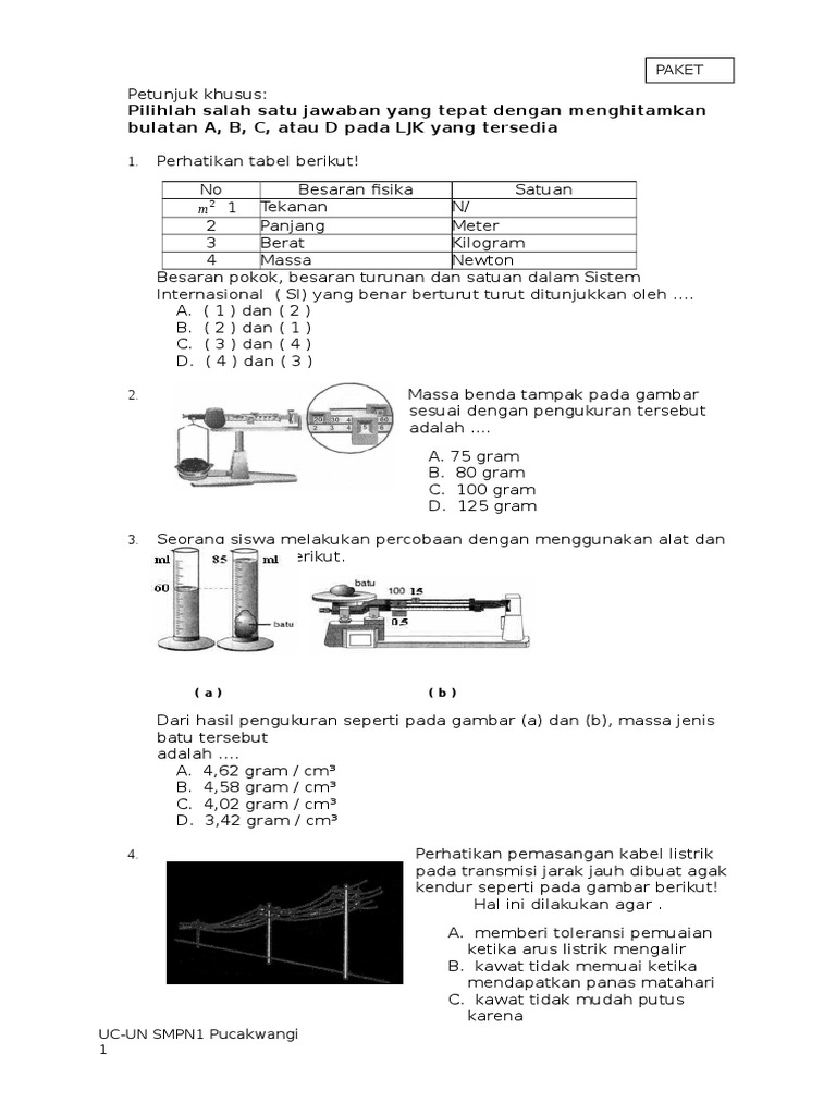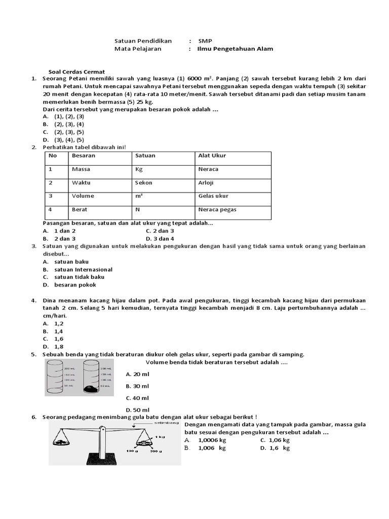 PAKET I CONTOH SOAL DAN PEMBAHASAAN IPA SMP. Kemampuan yang diuji : Menentukan besaran fisika dan satuan yang sesuai - PDF Download Gratis
