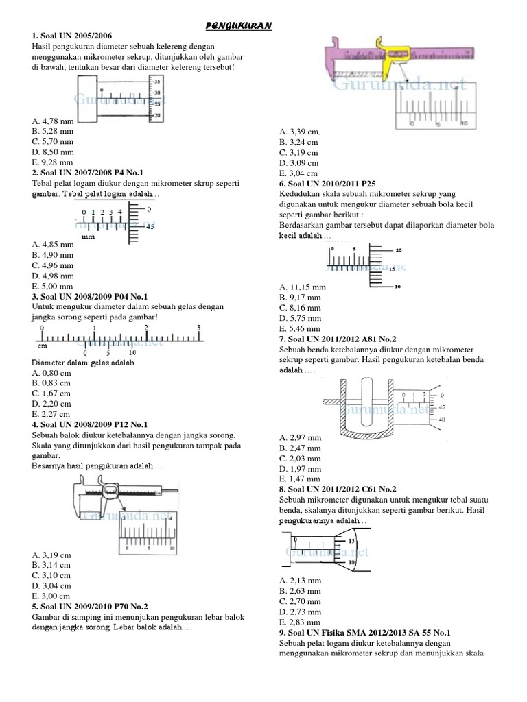 PDF) SOAL UN FISIKA SMA 2014 - PENGUKURAN | Ilham Wahyudin - Academia.edu