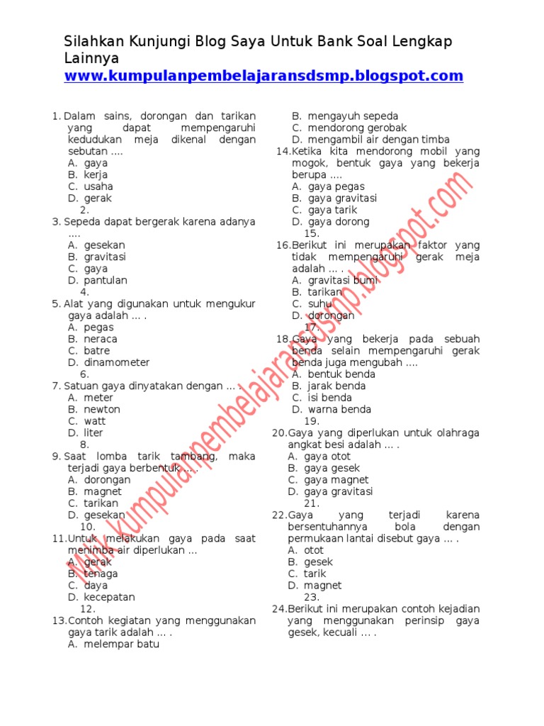 Soal Bab Gaya Untuk Kelas IV Sd