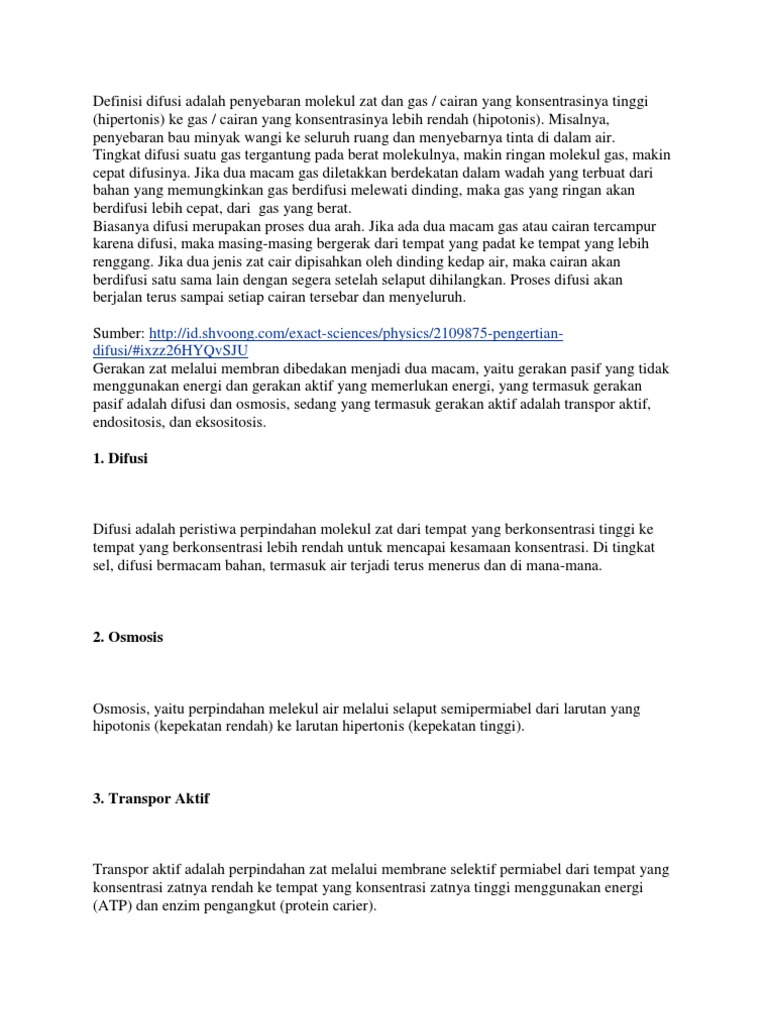 DOC) A. Difusi dan Osmosis dalam Sel | Ehon Tantrawan - Academia.edu