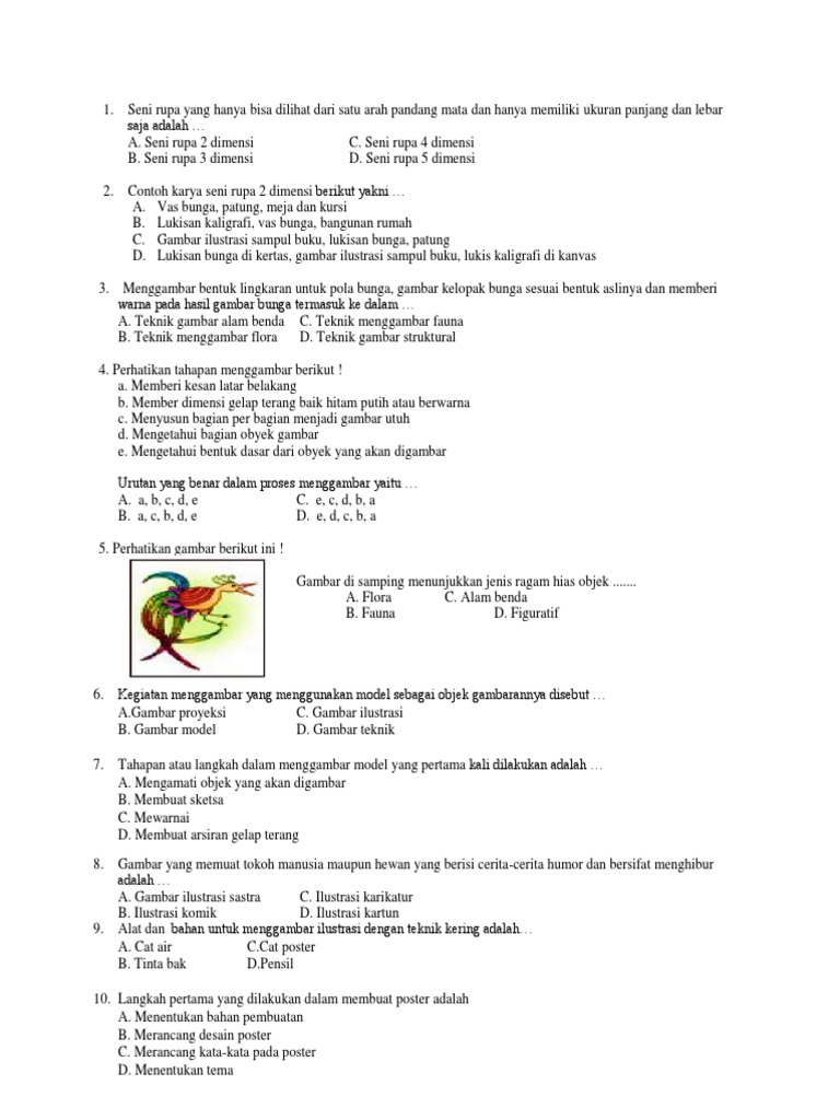 Kisi-kisi, Soal dan Kunci Jawaban Seni Budaya SMP Kelas 7 Semester Genap Kurikulum 2013 | Didno76.com