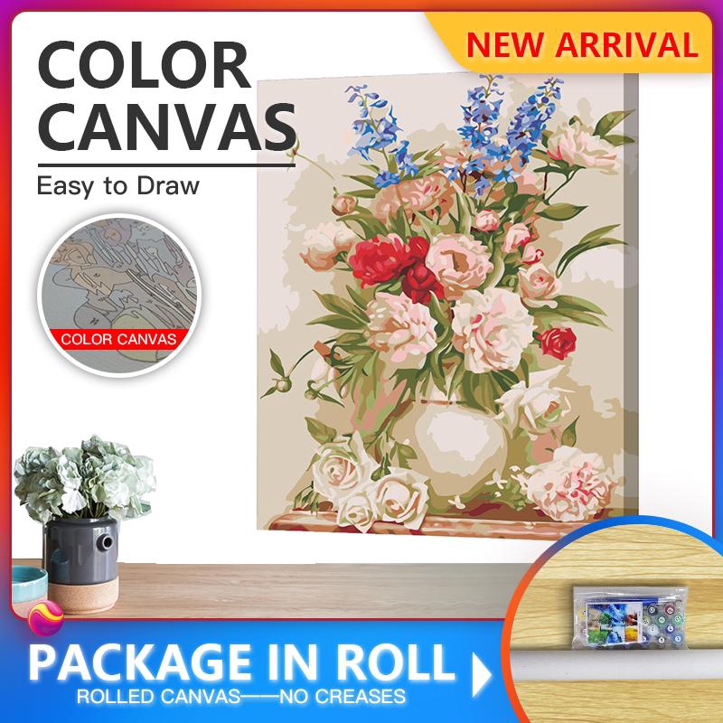 Huacan Cat Oleh Nomor Vas Bunga Diy Menggambar Kanvas Corak Gambar dengan Nomor Bunga Dekorasi Rumah|Painting & Calligraphy| - AliExpress
