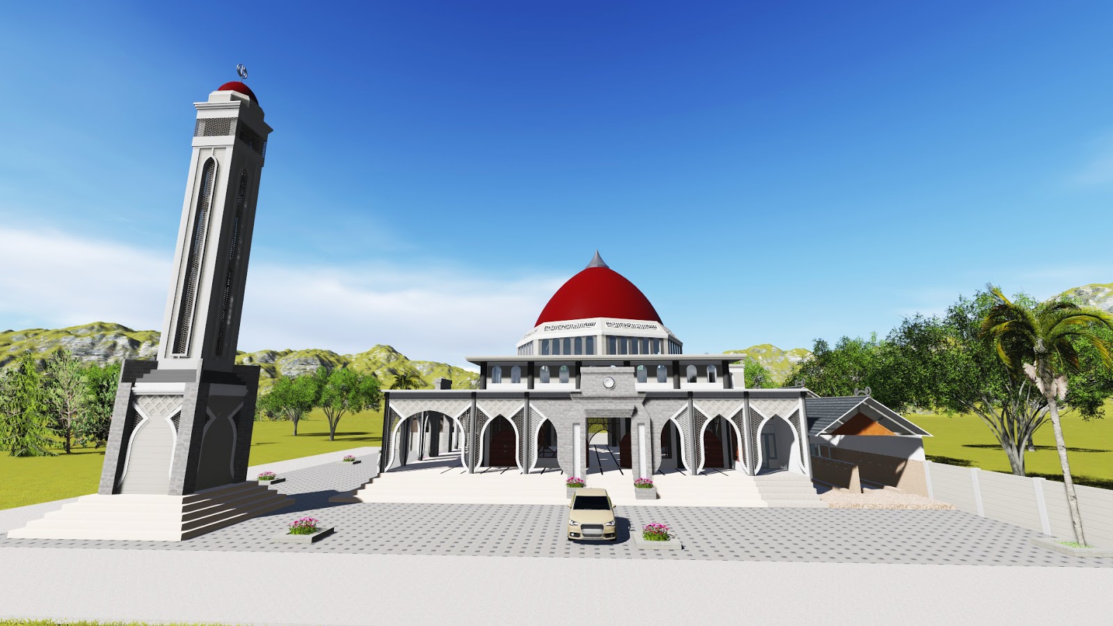 3D MODEL COLLECTION PALM OIL MILL MACHINERY THE ACTUAL SIZE & GENERAL » Gambar Model 3D Masjid Al Muttaqin Pangkalan Kerinci