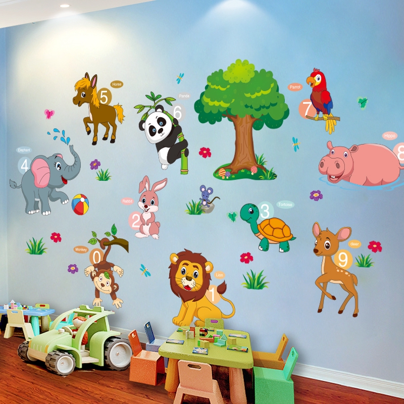 Kartun stiker hewan anak-anak stiker dinding ruang TK dekoratif lukisan 3d tiga dimensi stiker dindi | Shopee Indonesia