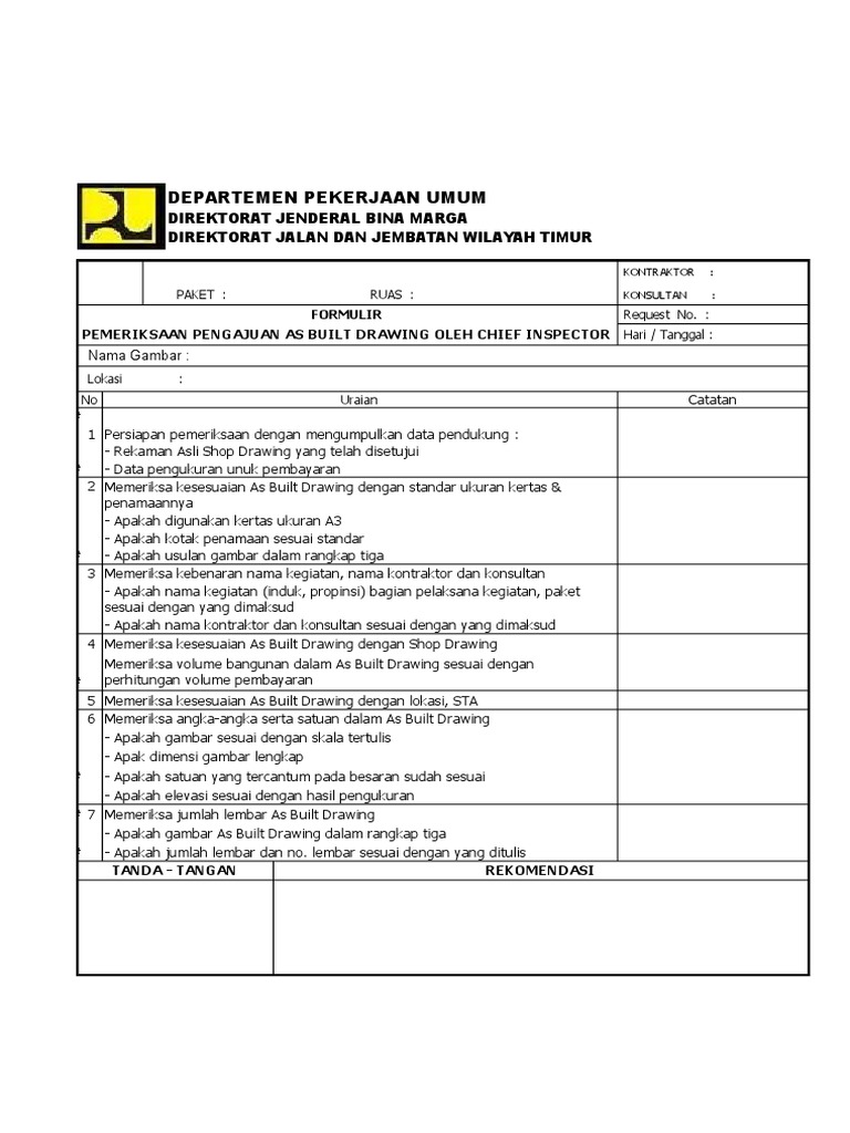 Form. Pemeriksaan Pengajuan as Built Drawing Oleh CI