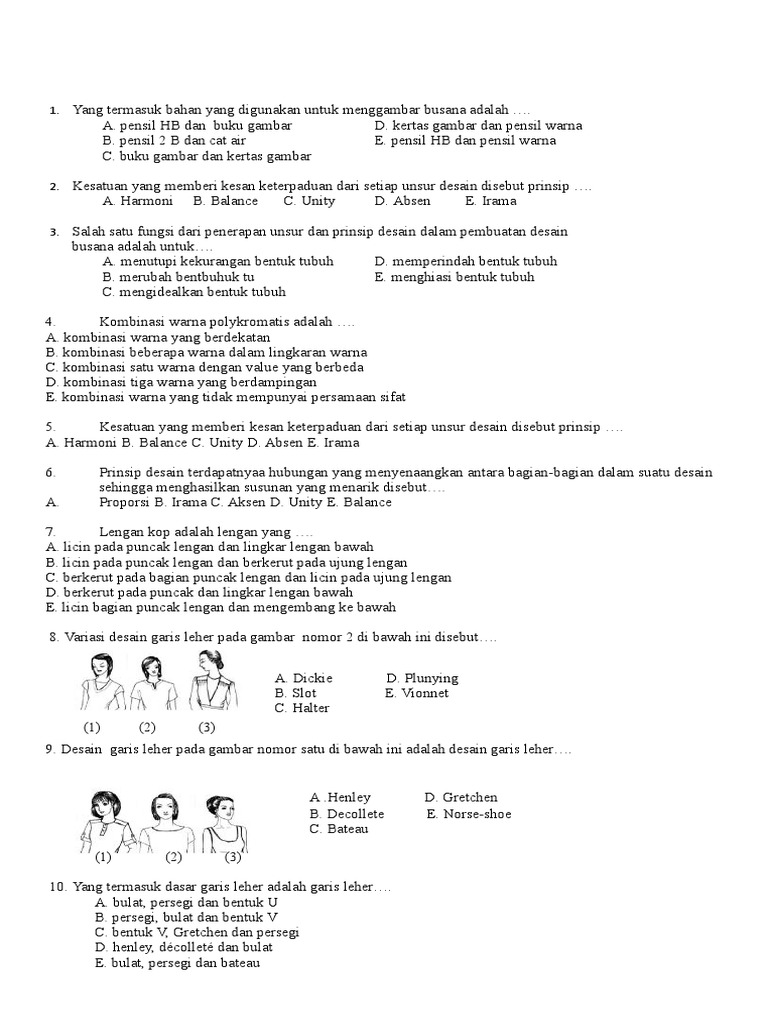 Soal Desain Busana Kelas Xi - Guru Ilmu Sosial