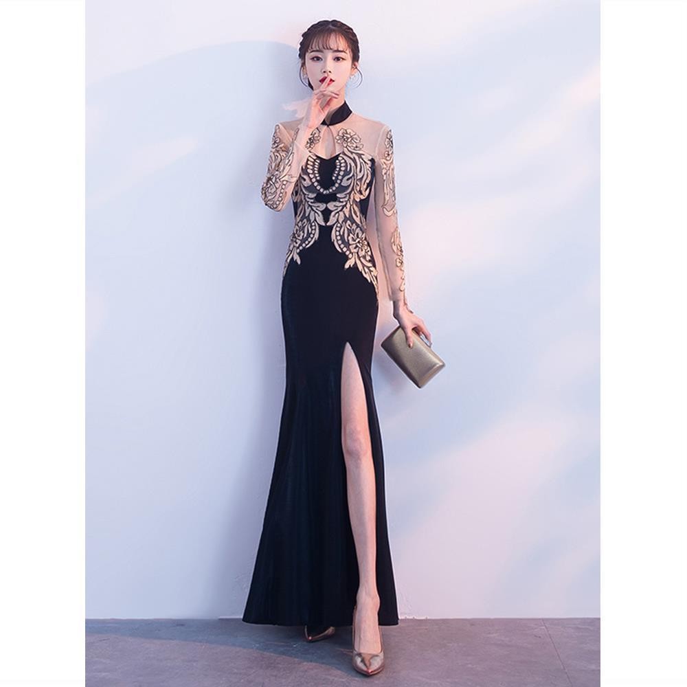 Gaun malam lengan panjang, Perjamuan wanita, Elegan wanita elegan gaun pesta, Rok ramping seksi | Shopee Indonesia