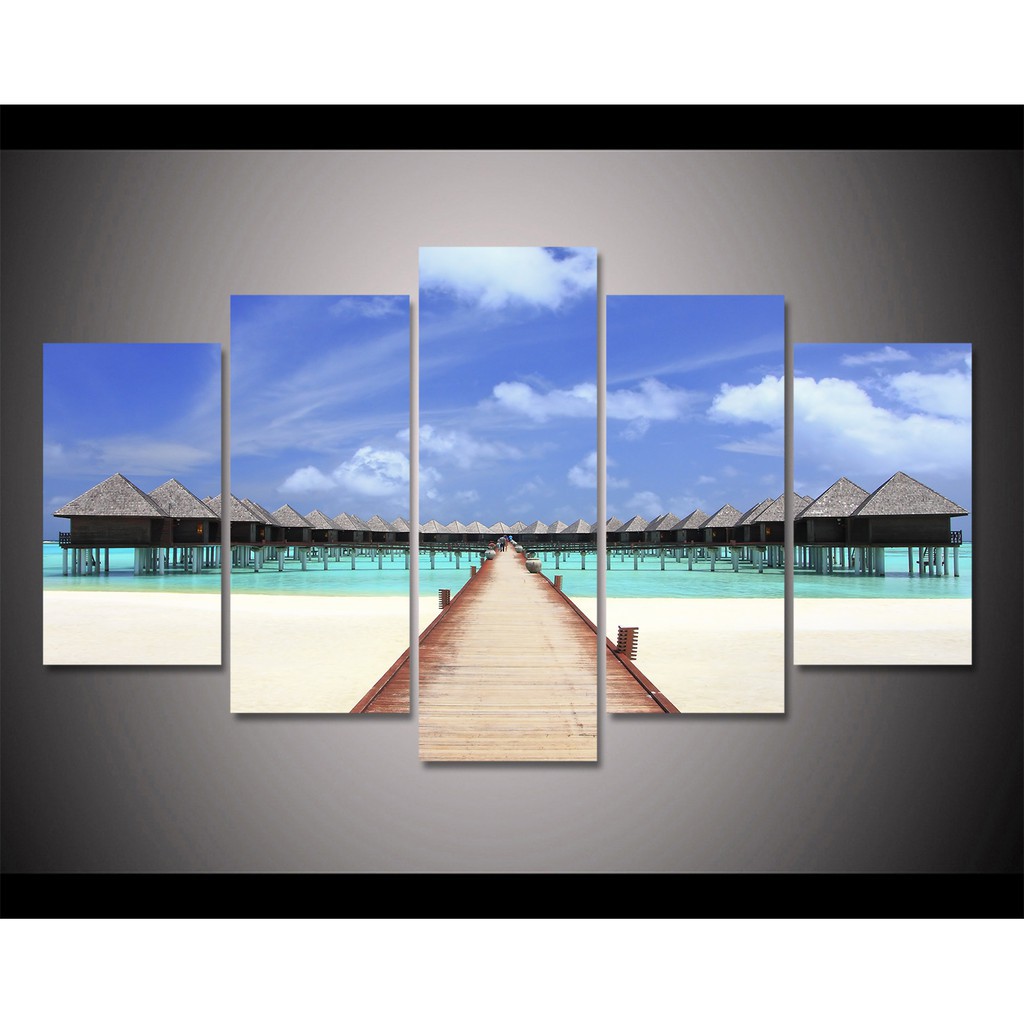 5Pcs Lukisan dengan Bahan Kanvas dan Gambar Pemandangan Pantai HD untuk Dekorasi Rumah | Shopee Indonesia