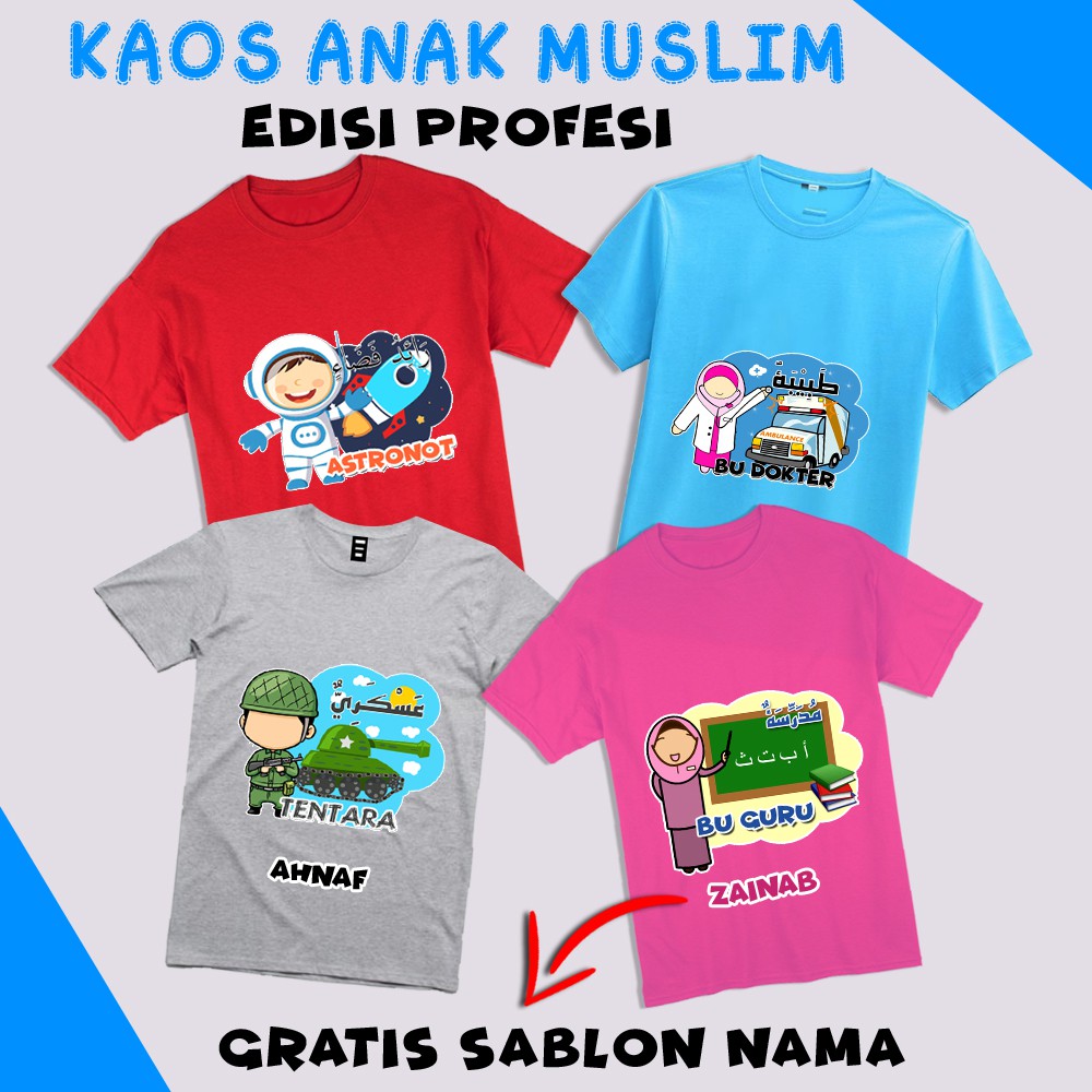 Kaos Anak Muslim - Edisi Profesi Bahasa Arab Gratis Sablon Nama | Shopee Indonesia