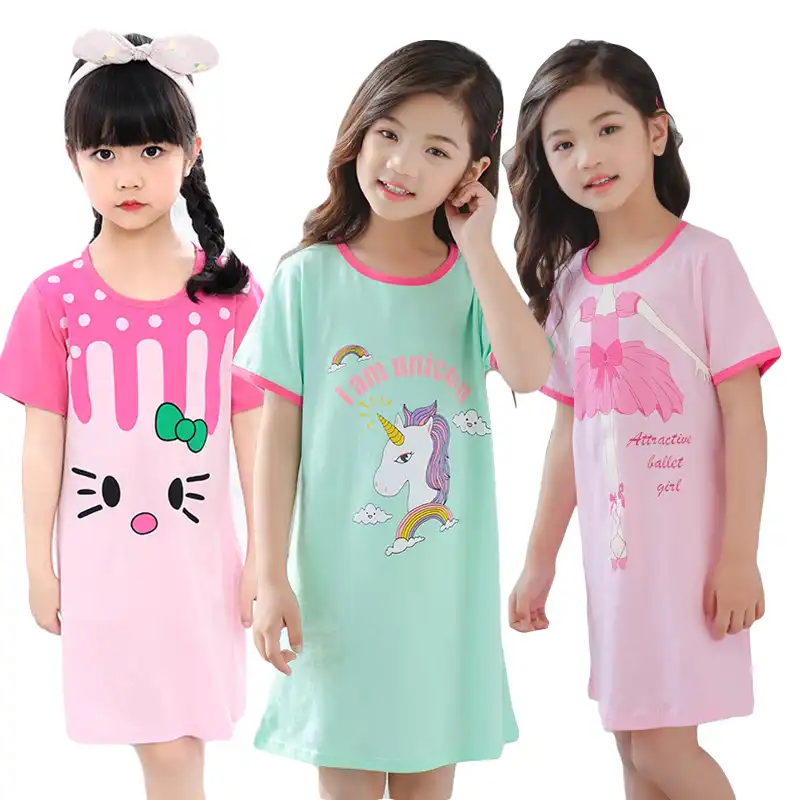 2020 Musim Panas Gadis Baju Tidur Anak Berpakaian Gaun Katun Piyama Bayi Gambar Kartun Pendek Lengan Baju Tidur Baju Tidur Gecelik| | - AliExpress