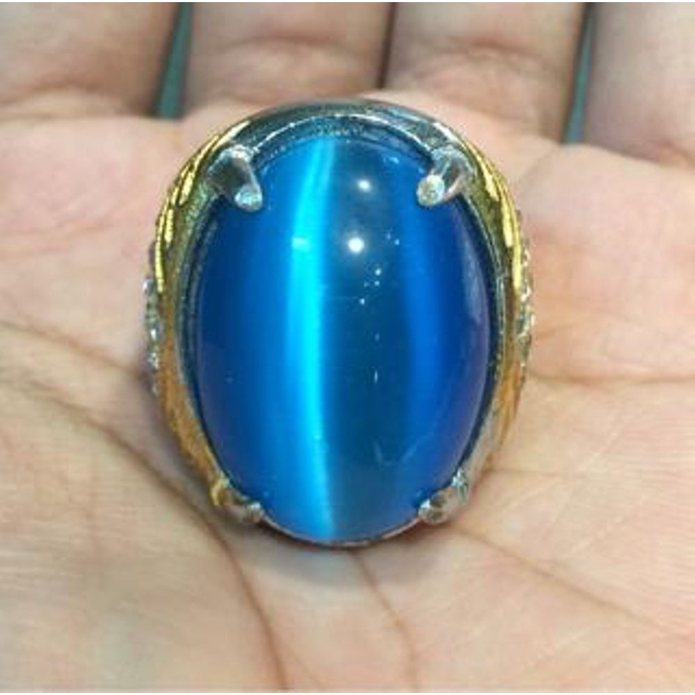 Cincin Batu Akik Mata Kucing Warna Biru Size Kantoran | Lazada Indonesia