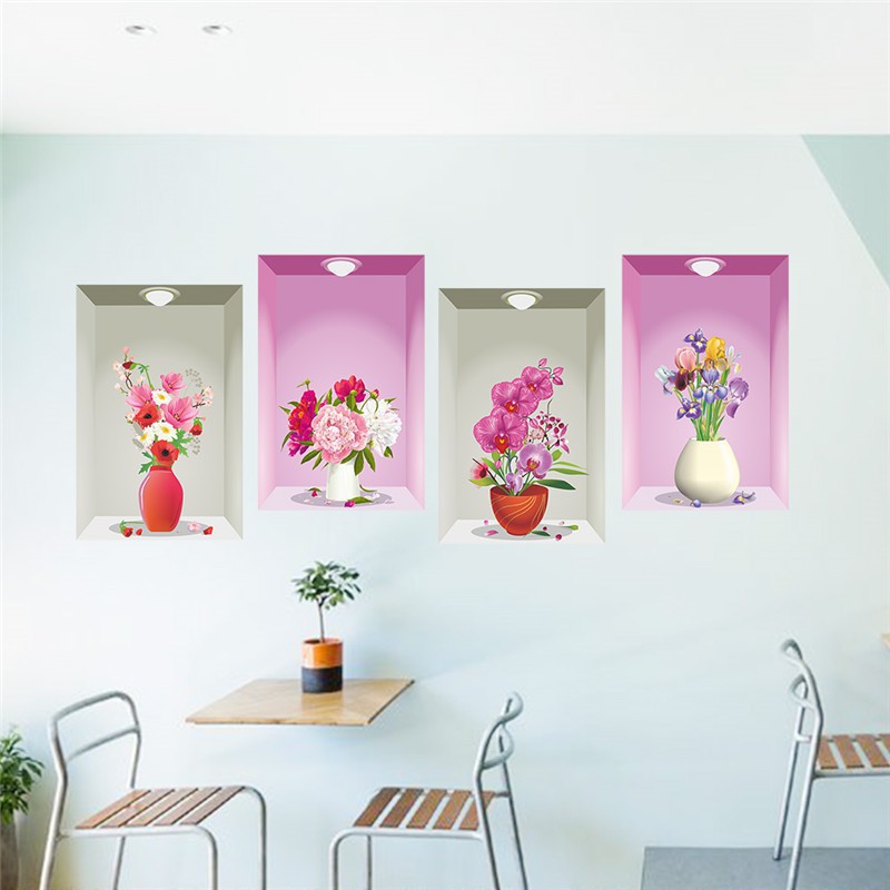 DIY Stiker Dinding dengan Bahan PVC Mudah Dilepas dan Gambar Vas Bunga 3D | Shopee Indonesia