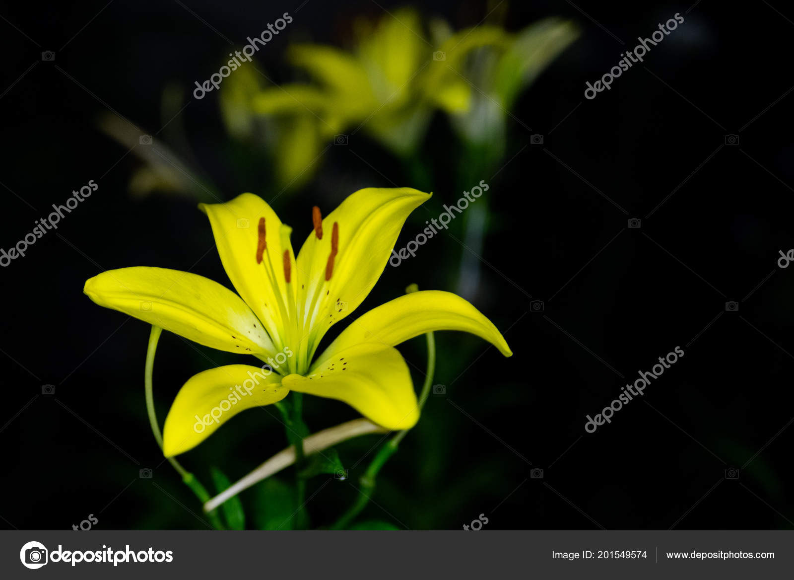 Bunga Bakung Kuning Yang Indah Dengan Latar Belakang Hitam — Stok Foto © Rostovdriver #201549574