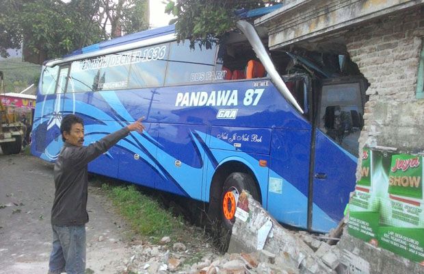 Bus Pandawa 87 Menabrak Rumah Warga di Pujon Malang - Bus Engineer