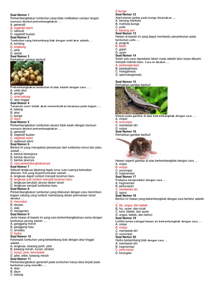 15+ Soal usbn tentang perkembangbiakkan hewan/tumbuhan beserta Ringkasan Materinya | SDN Ratujaya 1