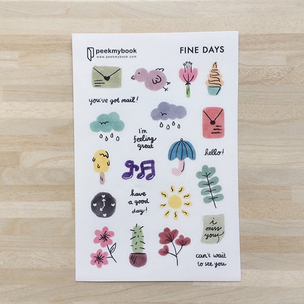 PEEKMYBOOK Fine Day Stickers 1 Lembar Stiker Glossy Hias Hiasan Diary Gambar Tempel Tema Keseharian | Shopee Indonesia