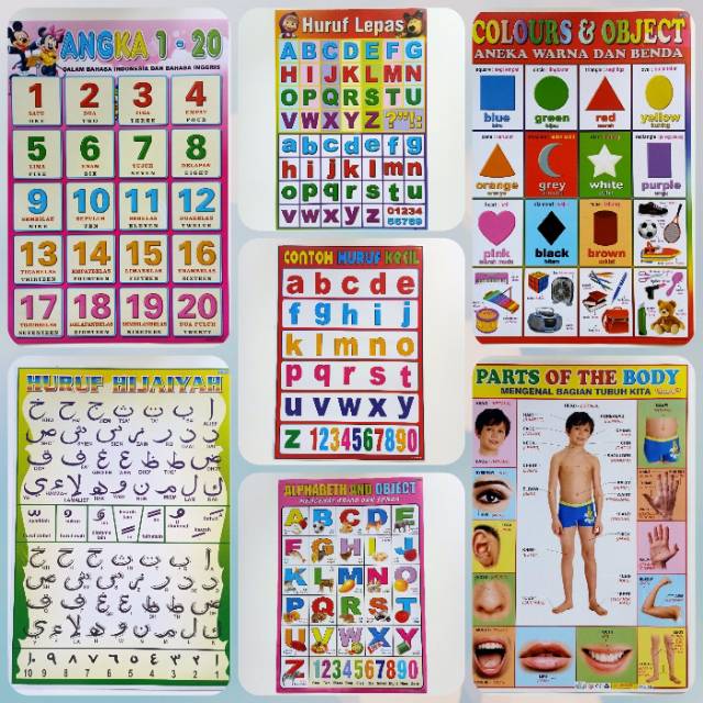 POSTER GAMBAR HURUF LEPAS, HURUF BESAR, HURUF KECIL, HURUF HIJAIYAH, ANGGOTA TUBUH, WARNA | Shopee Indonesia