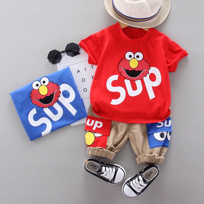 Set Kaos T-Shirt Lengan Pendek Gambar Kartun Elmo Lucu + Celana untuk Usia 0-1-5 Tahun | Shopee Indonesia