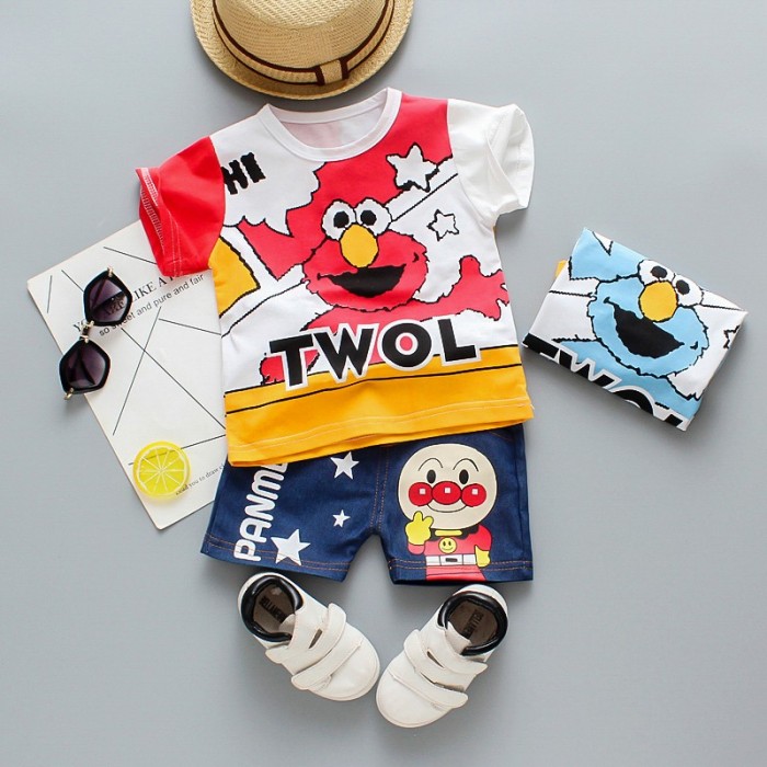 Jual Mantap Setelan Kaos T-shirt Gambar Elmo + Celana Pendek Kartun untuk - Kab. Bogor - Beautiful Hut | Tokopedia