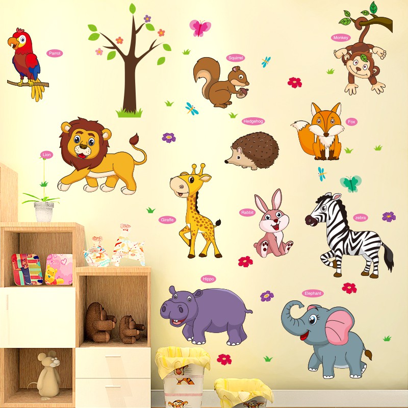 Stiker Dinding 60x90cm Motif Karakter Motif Animal Pohon Kebun Binatang Dekorasi Kamar anak | Shopee Indonesia