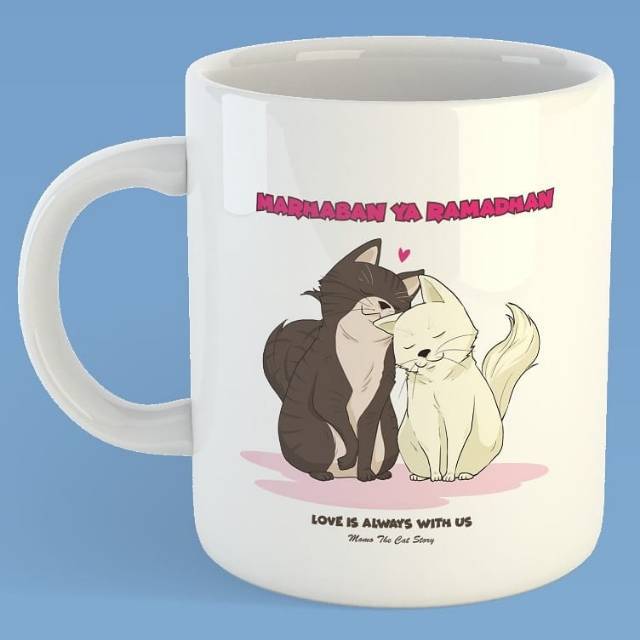 Mug Kucing Gambar 2 Kucing dan Tulisan Marhaban Ya Ramadhan | FREE POUCH & STIKER | Shopee Indonesia