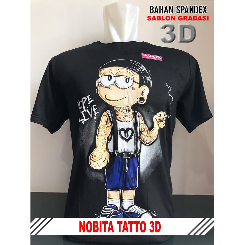 Kaos Baju distro murah Kartun doraemon - NOBITA TATTO 3D - Hitam, L | Shopee Indonesia
