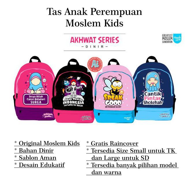 183 Moslem Kids Tas Anak Laki laki perempuan Raincover Karakter Kartun Islami PAUD TK SD Ori Bergara | Shopee Indonesia