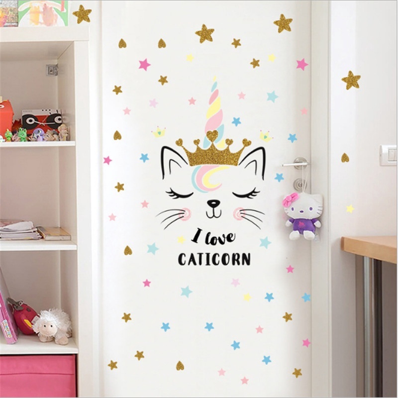 3D PVC Indah Kartun Lucu Unicorn Bintang Jantung Kucing Stiker Dinding Dekorasi Rumah | Shopee Indonesia