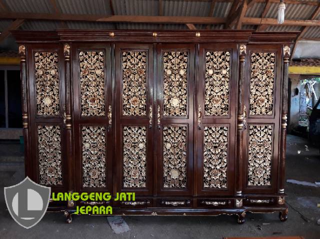 Lemari pakaian gebyok pintu 6 furniture jati mebel jepara | Shopee Indonesia
