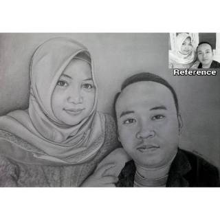 A4+Bingkai / Sketsa Wajah / Kado Pernikahan / Lukisan Pensil / Lukis Wajah / Hiasan Dinding | Shopee Indonesia