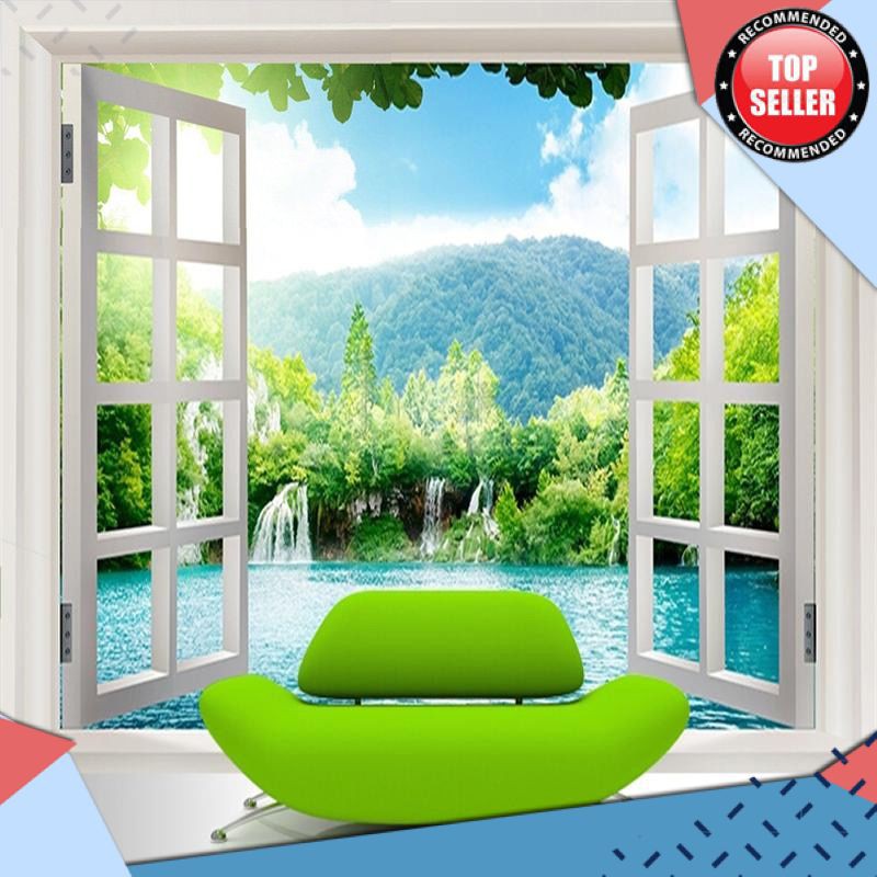 TERLARIS Kustom 3D Lukisan Dinding Wallpaper Window 3D Air Terjun Pemandangan Hutan Seni Mural | Shopee Indonesia