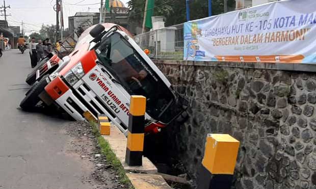 Truk Molen Varia Usaha Beton Terperosok Selokan