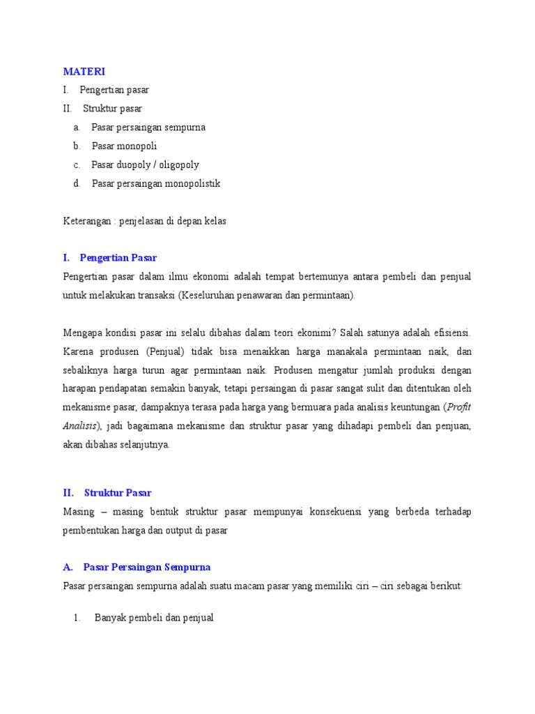 DOC) BENTUK DAN JENIS PASAR DALAM PEREKONOMIAN | Citra Anugrah Lifany - Academia.edu